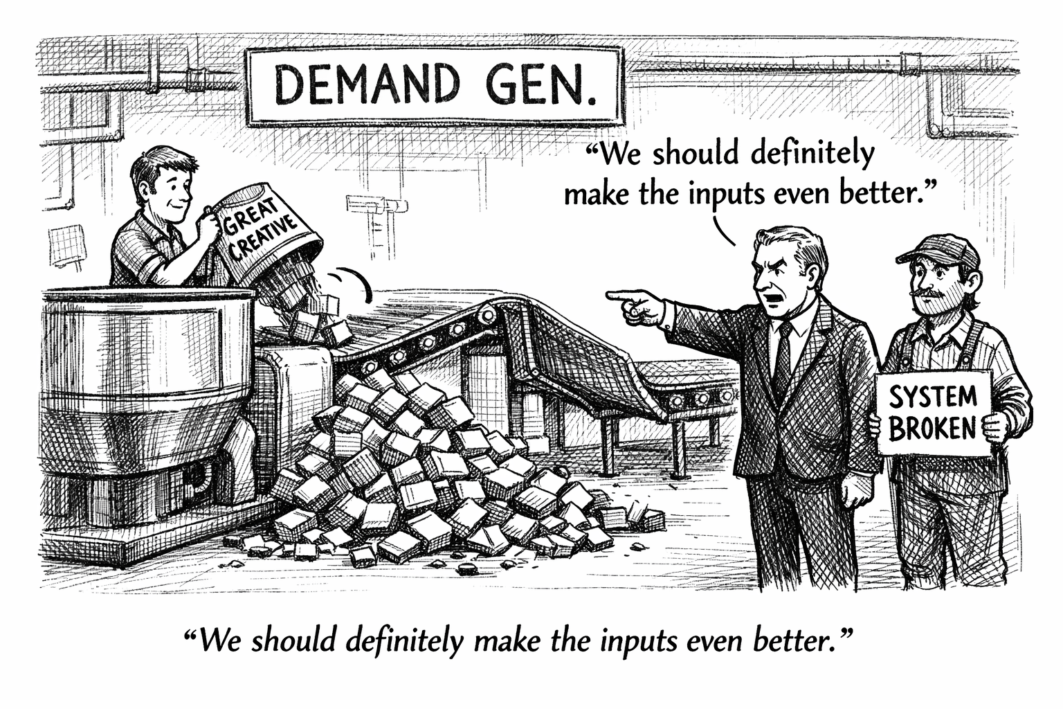 You probably didn't realize you were doing this, but somewhere along the way your organization started treating demand generation like a series of disconnected pushes instead of a continuous system. One quarter you run a webinar campaign. Next quarter it's a cold email and ABM combo. The quarter after that you're back to a big content play. Each one was well-intentioned, reasonably funded, and delivered some results. But none of them produced pipeline at the same rate. None of them ever got repeated exactly the same way.